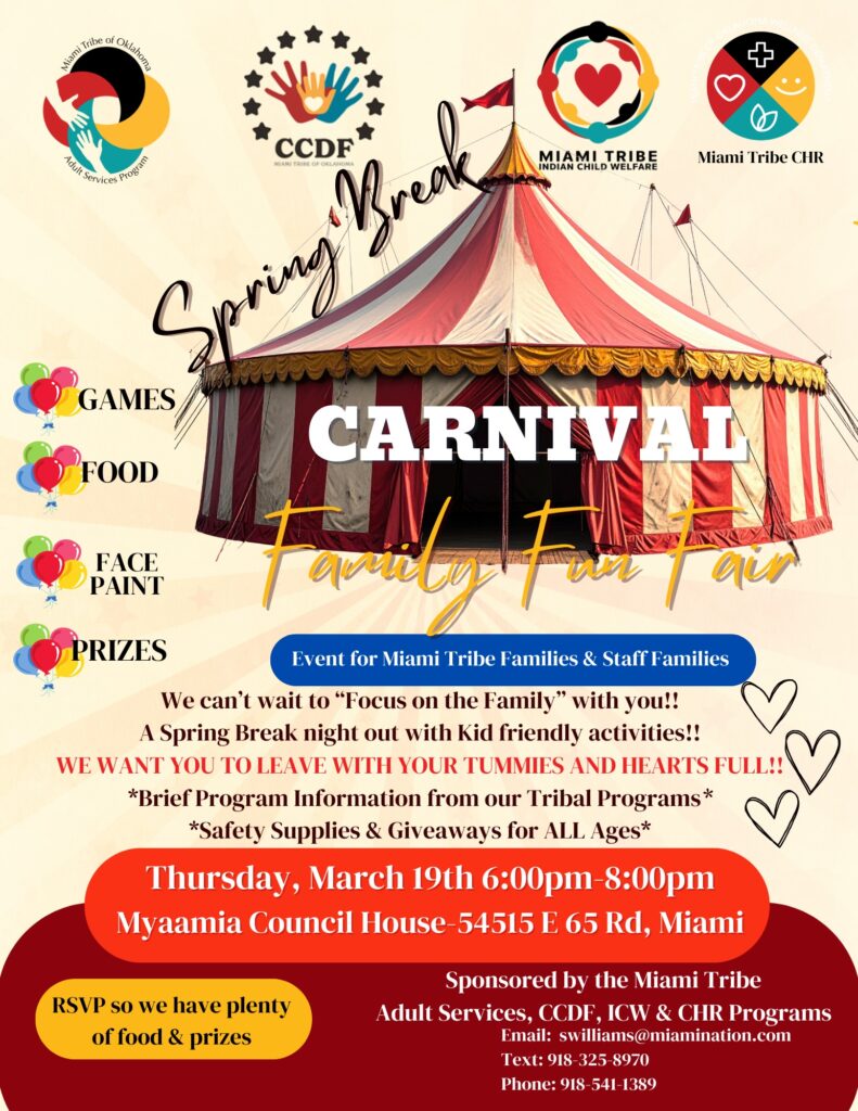 Carnival Family Fun Fair Sponsored by the Miami Tribe Adult Services, CCDF, ICW, & CHR Programs